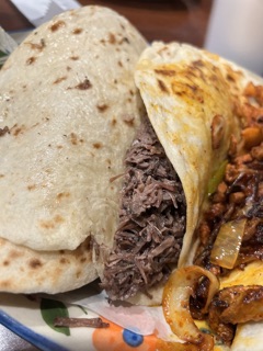 The food was delicious! Flour tortillas & tripas;) Lots of food options everyone at our table was happy & full!